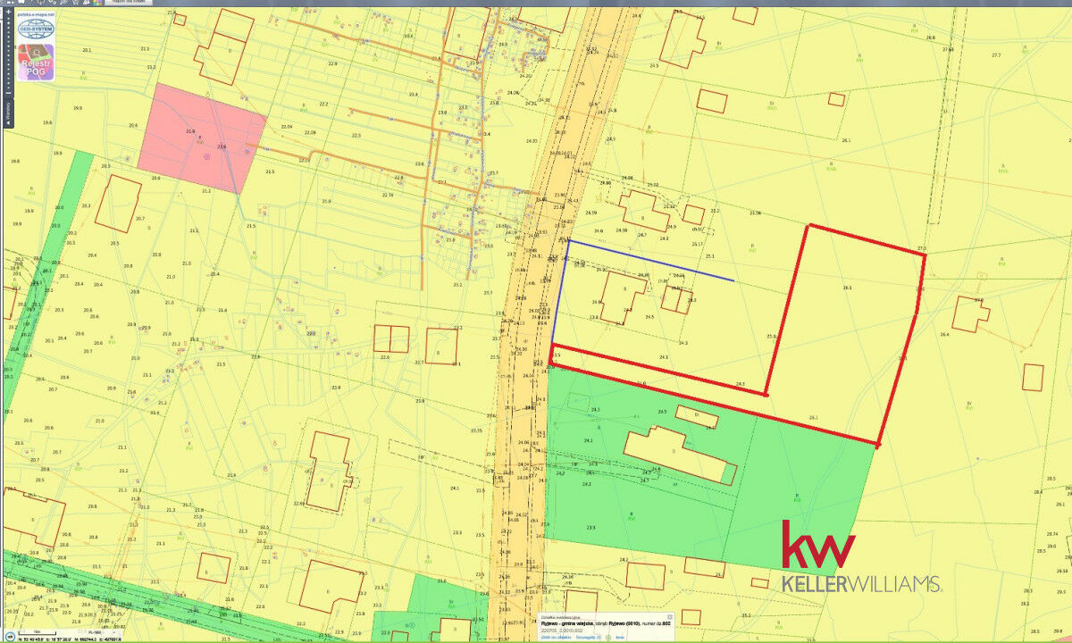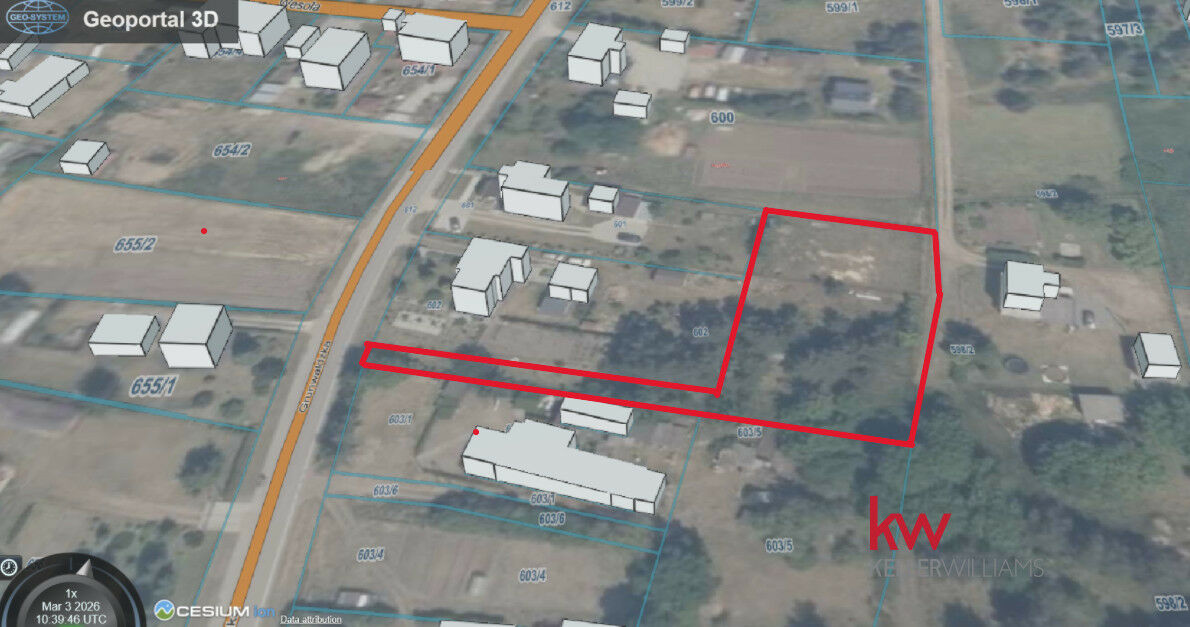 • Numer działki: Wyodrębniona z działki nr 602 - wydzielona z większego terenu i ogrodzona siatką.